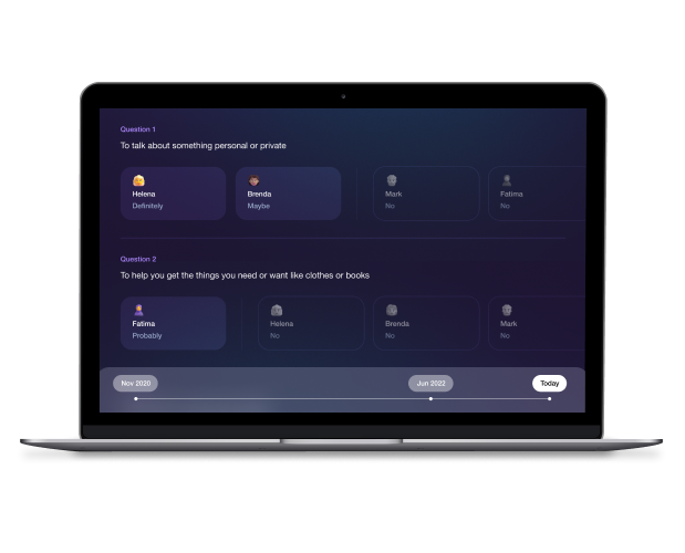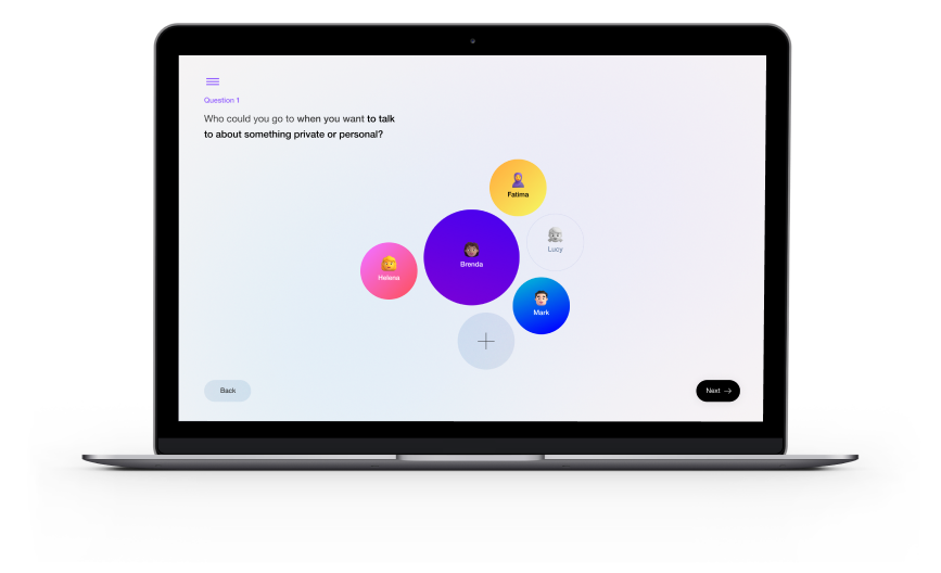 At the end of each Questionnaire, the young person is presented with a Connections Summary — a great way of seeing how their trusted connections have changed over their time on the programme.